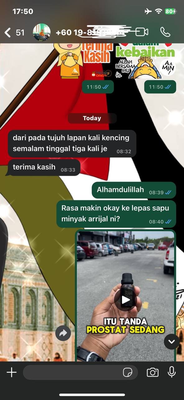 Minyak Herba Rijal Pro hanya untuk kegunaan luaran sahaja.