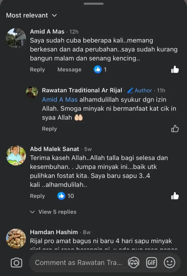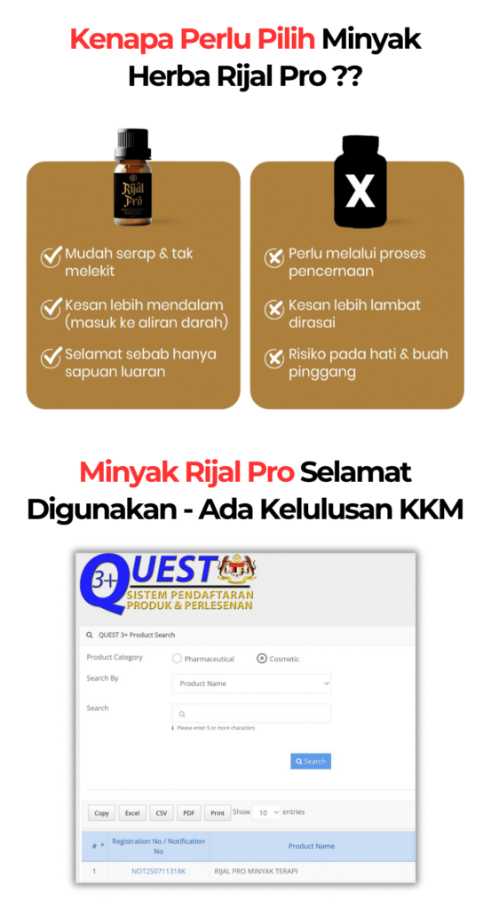Minyak Herba Rijal Pro hanya untuk kegunaan luaran sahaja.