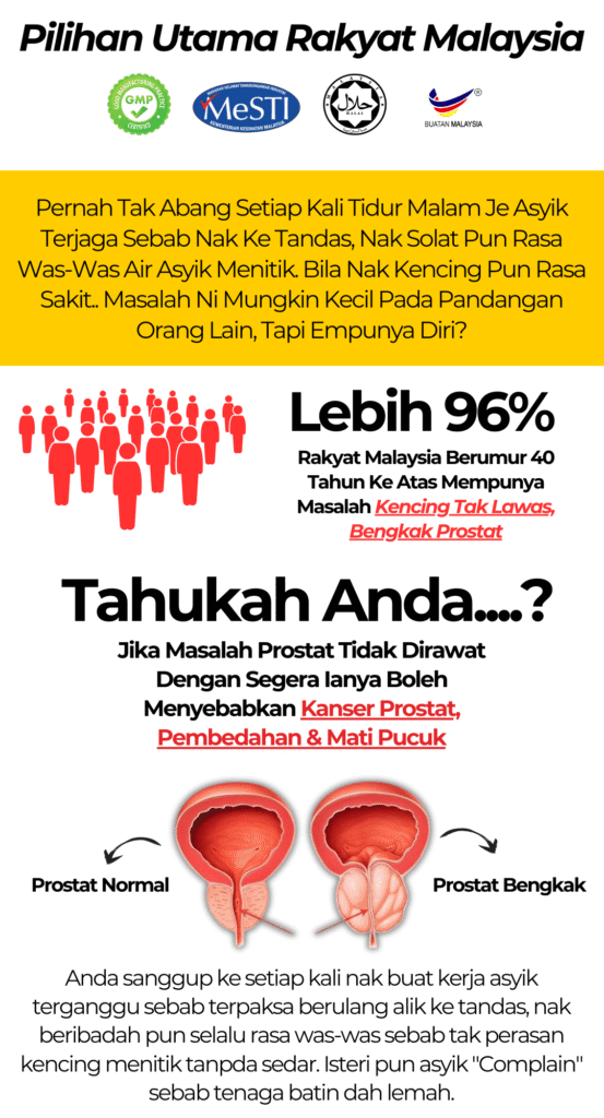 Produk ini sesuai untuk lelaki yang alami masalah kencing tak lawas, lemah tenaga batin & bengkak prostat.